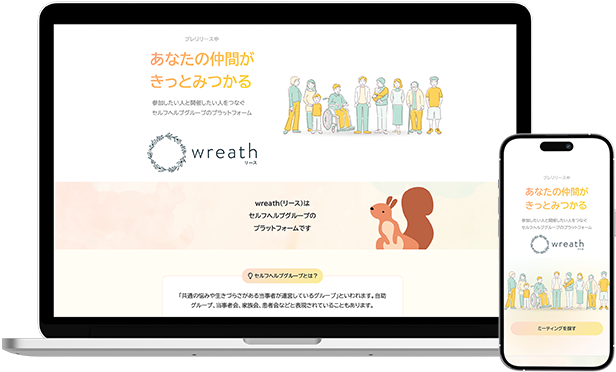 クリスマスの時期によく見かけるリース(花輪)がセルフヘルプグループに似ているように思ったことがきっかけで、wreath(リース)と名付けました。一つひとつの花や草木が紡がれてリースがつくられるように、人と人がわかちあうなかで新しい何かが生まれていきますようにと期待を込めています。